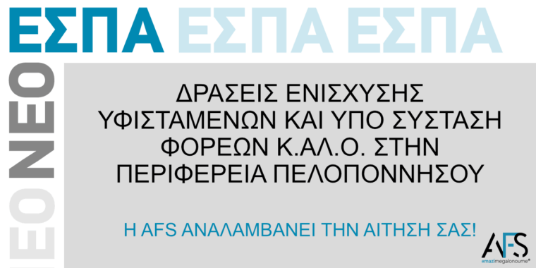 Η νέα δράση υποστηρίζει επενδυτικές πρωτοβουλίες υφιστάμενων και υπό σύσταση φορέων Κοινωνικής και Αλληλέγγυας Οικονομίας (Κ.ΑΛ.Ο.) στην Περιφέρεια Πελοποννήσου.Στόχος είναι η ενίσχυση της κοινωνικής επιχειρηματικότητας, η προώθηση της απασχόλησης και η ενδυνάμωση της τοπικής ανάπτυξης, σύμφωνα με τον Ν.4430/2016. 🔹 Κατάσταση Δράσης 📍 Αναμένεται δημοσίευση 📅 Περίοδος Υποβολής Έναρξη: 13 Οκτωβρίου 2025 Λήξη: 28 Νοεμβρίου […]