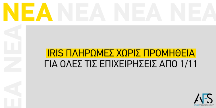 ΙRIS πληρωμές χωρίς προμήθεια για όλες τις επιχειρήσεις από 1/11