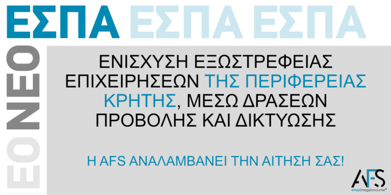 Προδημοσίευση δράσης: Ενίσχυση εξωστρέφειας επιχειρήσεων της Περιφέρειας Κρήτης, μέσω δράσεων προβολής και δικτύωσης