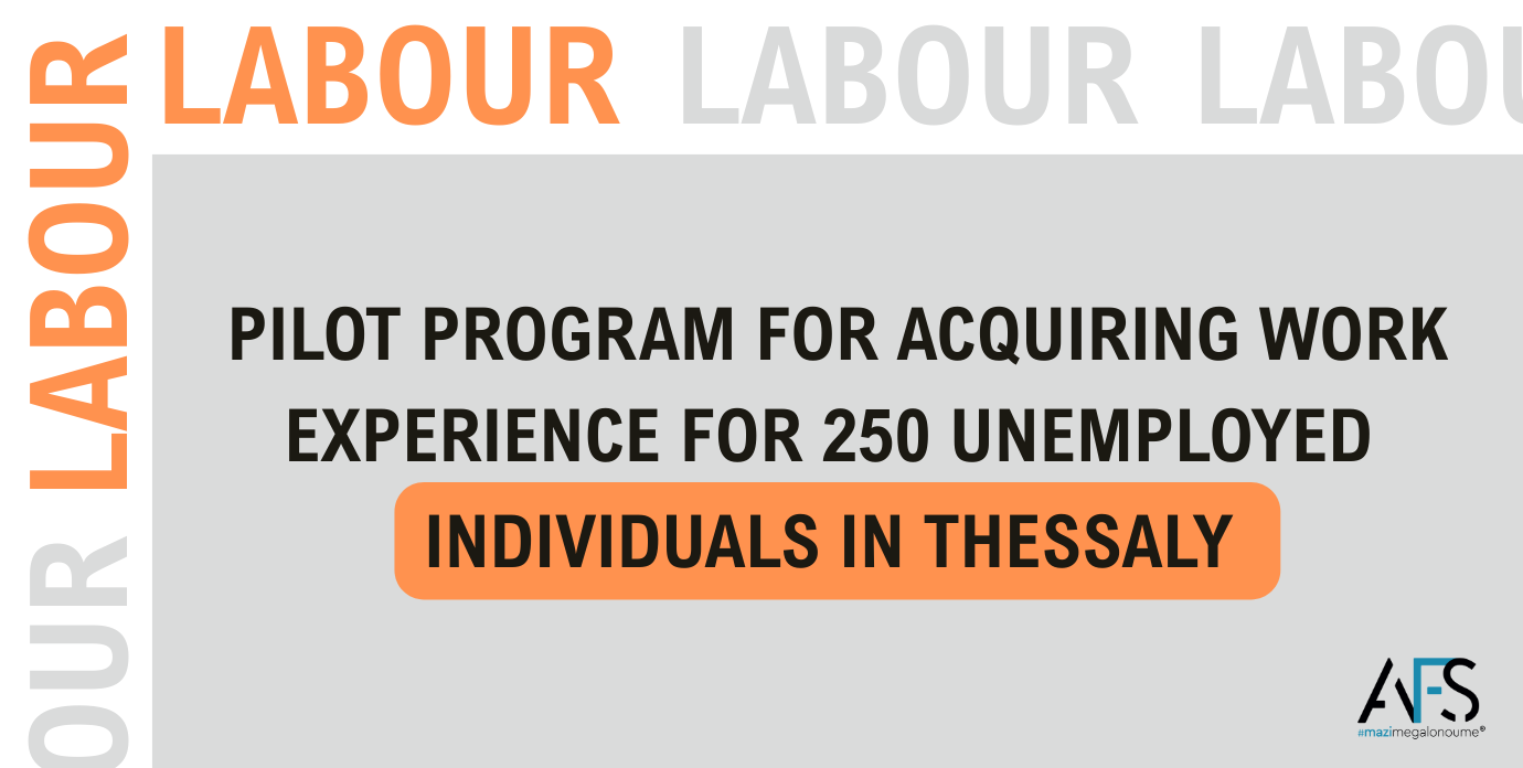 Pilot program for acquiring work experience for 250 unemployed individuals in Thessaly