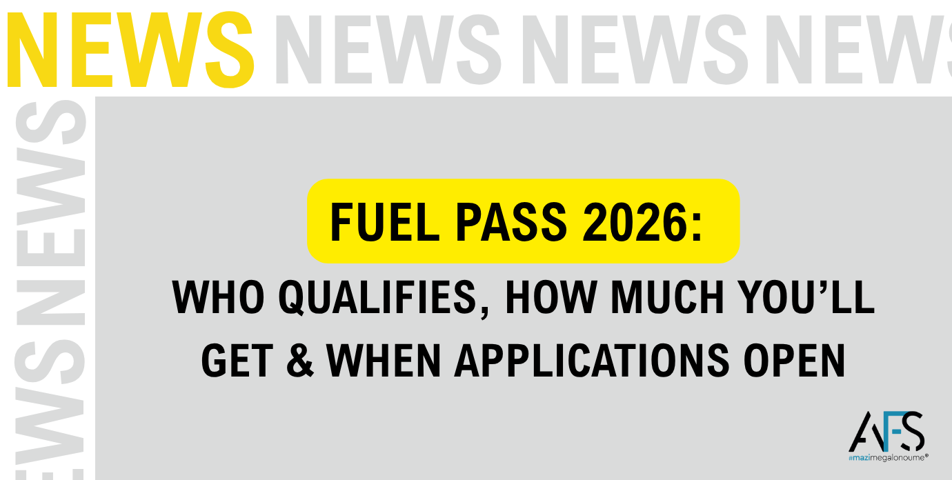 Δημοσιεύθηκε στο ΦΕΚ η απόφαση για το Fuel Pass 2026, το οποίο αφορά οικονομική ενίσχυση για την κάλυψη του κόστους καυσίμων για τους μήνες Απρίλιο και Μάιο 2026. Η πλατφόρμα υποβολής αιτήσεων ανοίγει στις 6 Απριλίου 2026 και θα παραμείνει διαθέσιμη έως τις 30 Απριλίου 2026. 👤 Ποιοι είναι δικαιούχοι Δικαιούχοι της ενίσχυσης είναι φυσικά […]